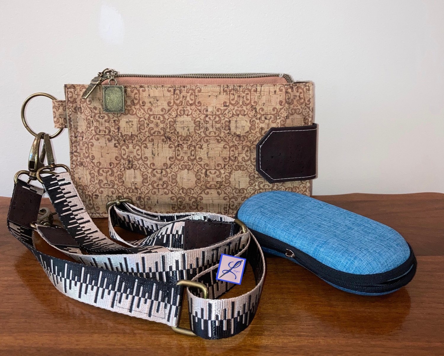 * OUTER and INNER LAYERS, SHOULDER and WRIST STRAPS, D-RING TABS – 1/2 yard (0.5 metre) of raw edge material, for example 0.7 mm faux leather/suede/vinyl, cork, or a similar product.