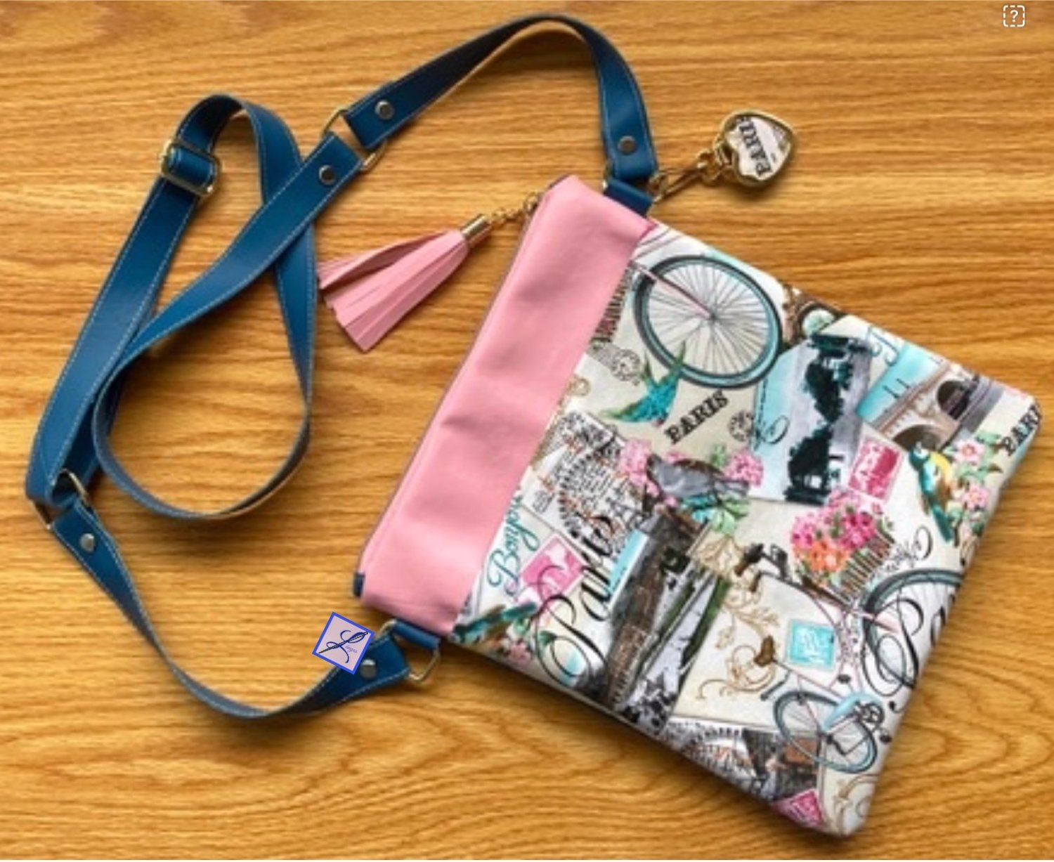 A PDF SEWING PATTERN for the Tessa II © Bag, a fully lined crossbody bag with a top zipper closure, and 5 strap and 5 pocket options. There are TWO sizes bundled in this pattern – one large enough for a TABLET 10″ wide x 11” tall (25 cm x 28 cm) and one the perfect size for a CELL PHONE and more, 6″ wide x 9” tall (15 cm x 23 cm).